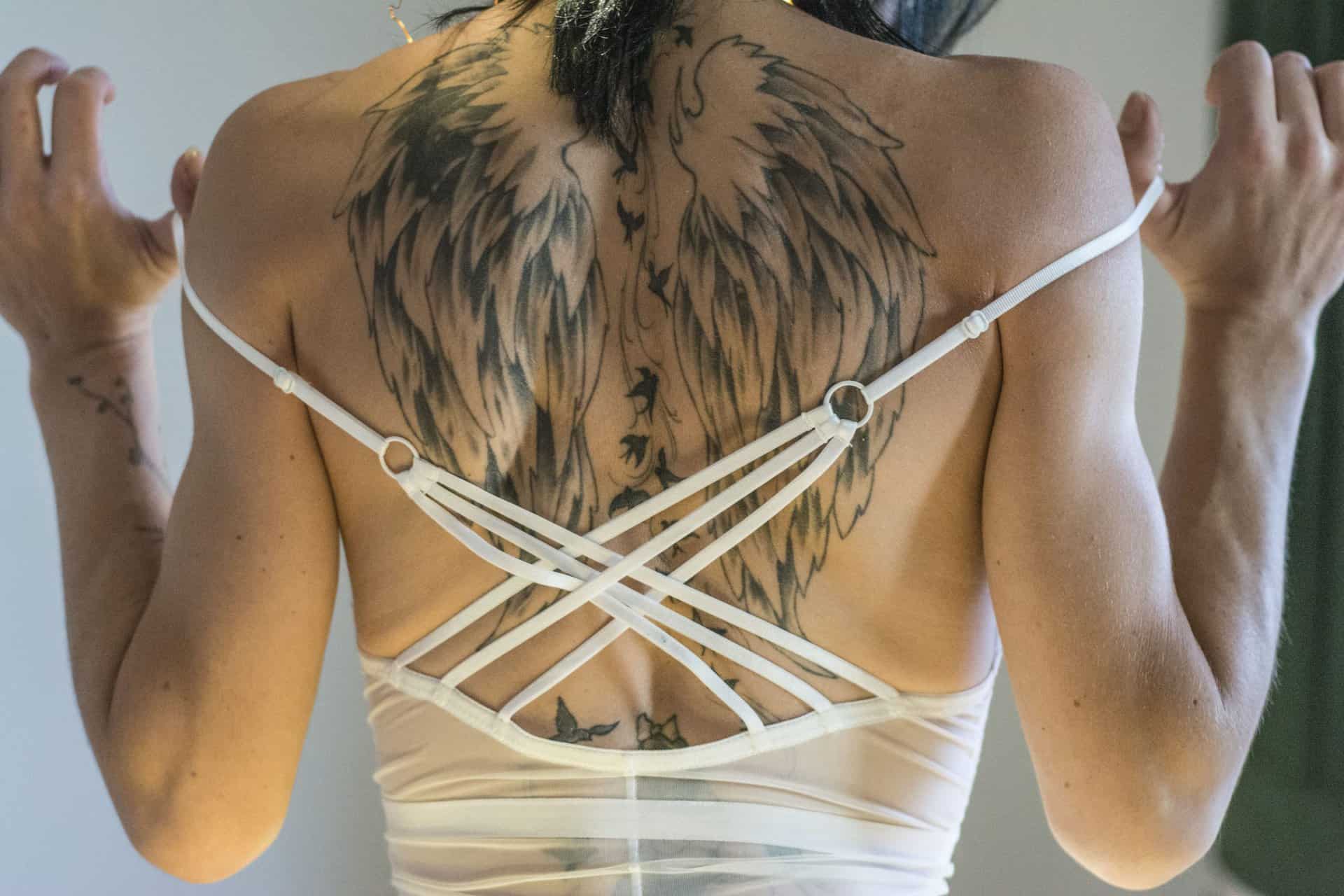 My first tattoo that I got was the birds on my feet. I had them done by Adam Murry from Muz Art. The reason I decided to tattoo my feet was to resemble my freedom. I wanted it to be a reminder that I choose my own destiny. Like a bird soaring through the sky, traveling with the wind. I too was free to soar with the wind. A free kindred spirit, flying through life with not a care on my wings. I also created my back piece around this theme, dedicating my body to mother nature and all her glory. Adam and I collaborated my back around my love for nature and freedom. I allow my artist some freedom also by allowing them to create a piece best suited to my body, personality and needs.  To say the least, I was not disappointed with the final result.